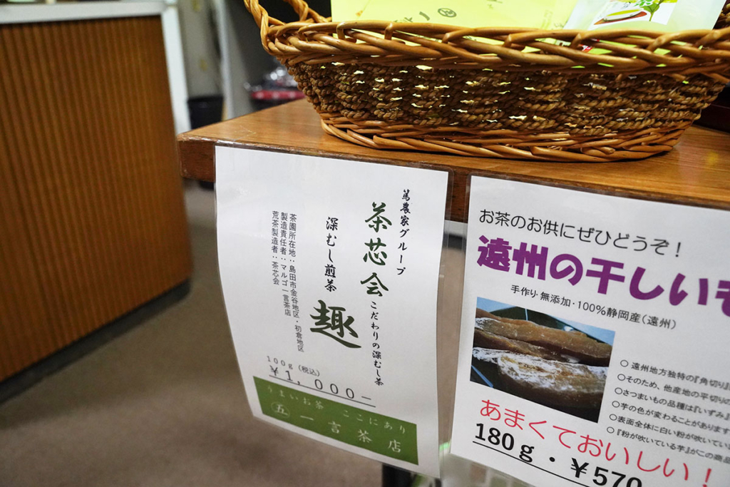 協賛の「一言茶店」のお茶や干しいもの販売も。日中ご来店のお客さまにとても喜ばれました。